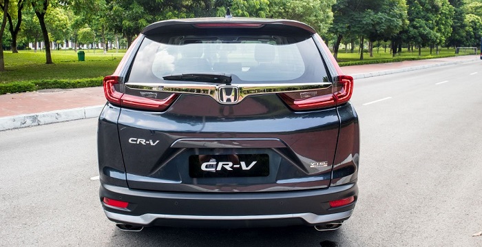 Di chuyển ra phần đuôi xe, Honda CR-V 2021 tiếp tục sử dụng cụm đèn hậu chữ “L”, đây là cải tiến khá đáng giá của thế hệ mới khi giúp cho mẫu xế hộp này, có thêm sự trẻ trung, độc đáo. Ấn tượng hơn nữa, cụm đèn hậu này còn được nối liền với nhau nhờ dải chrome to bản, cặp ống xả 2 bên chính là điểm nhấn ngay ở khu vực này, càng giúp cho xe được lòng người sử dụng.