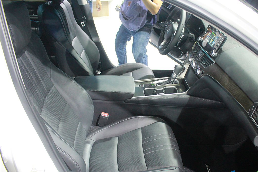 Chất liệu da cao cấp cùng một số chi tiết ốp vân gỗ và các đường viền kim loại sáng bòng làm tăng thêm tính sang trọng cho cả khoang nội thất Honda Accord mới. Bên cạnh đó giao diện điều khiển trung tâm mang thiết kế ba chiều sắc sảo giúp Honda Accord thế hệ thứ 10 trở nên độc đáo hơn.