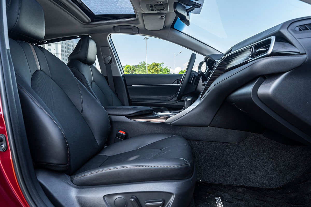 Về thiết kế ghế ngồi, Toyota Camry dường như nổi bật hơn khi ghế lái có thể chỉnh điện 10 hướng và ghế hành khách chỉnh điện 8 hướng. Ở hàng ghế sau còn cố định khay đựng ly giúp hành khách chứa chai/ly nước mà không sợ đổ khi xe di chuyển.
