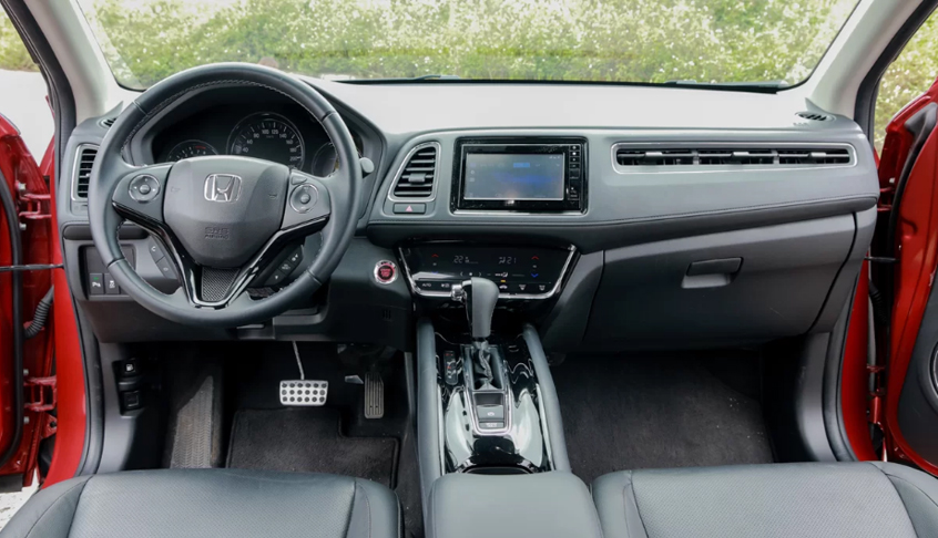 Honda HR-V 2020 sở hữu tay lái dạng 3 chấu, nhưng thiết kế có phần cổ điển khi có các nút ở 2 nan bên cạnh, được bố trí theo dạng hình tròn và có khả năng chỉnh điện 4 hướng. Phía sau không thể thiếu cụm đồng hồ công cụ có đầy đủ các đèn chiếu sáng có khả năng đổi màu trắng sang xanh lá cây tùy vào mức tiêu hao nhiên liệu.