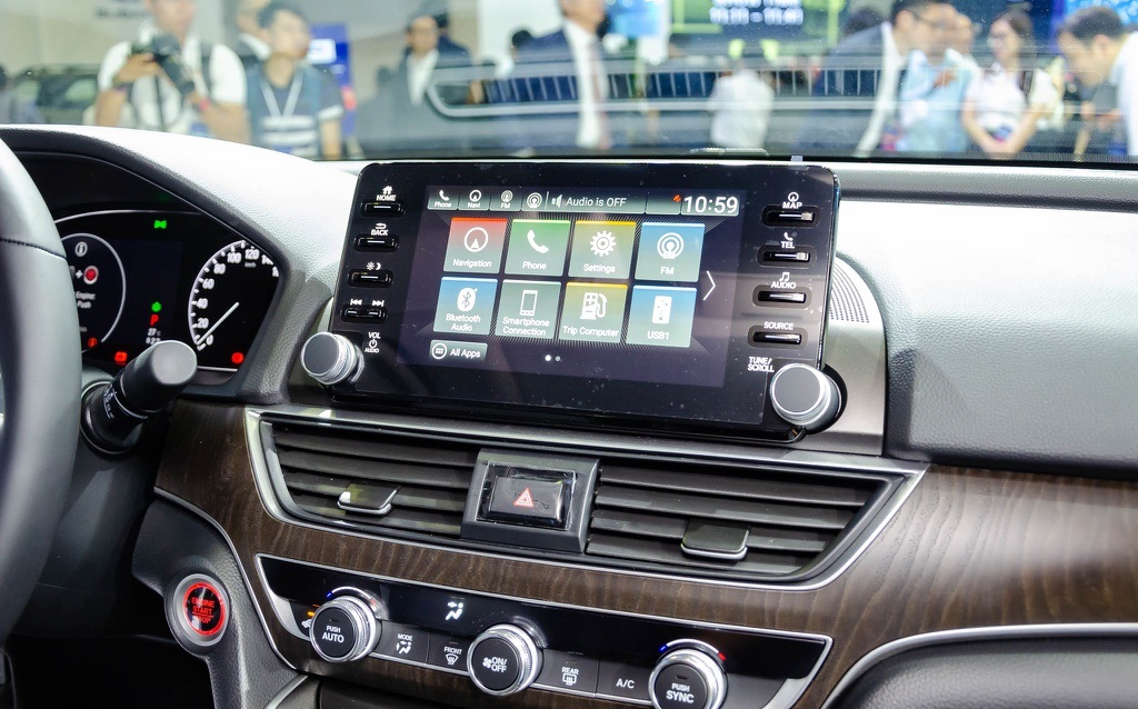 Không kém cạnh đối thủ, Honda Accord 2020 cũng sở hữu hàng loạt tiện nghi nổi bật, thậm chí có phần nhỉnh hơn về trang bị. Điển hình là hệ thống thông tin giải trí trên Honda Accord có màn hình cảm ứng 8 inch, đi cùng hệ thống âm thanh 8 loa, ngoài kết nối Bluetooth, USB, AM/FM còn hỗ trợ thêm kết nối Apple Carplay/Android Auto hiện đại.