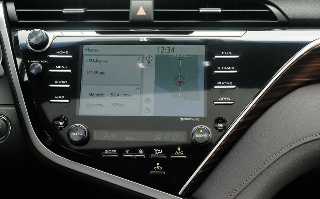 Hệ thống thông tin giải trí trên Camry gồm màn hình cảm ứng 7 inch kết hợp với dàn âm thanh 6 loa, kết nối đầu DVD 1 đĩa và nhiều kết nối thông dụng khác như AUX/USB/Bluetooth.